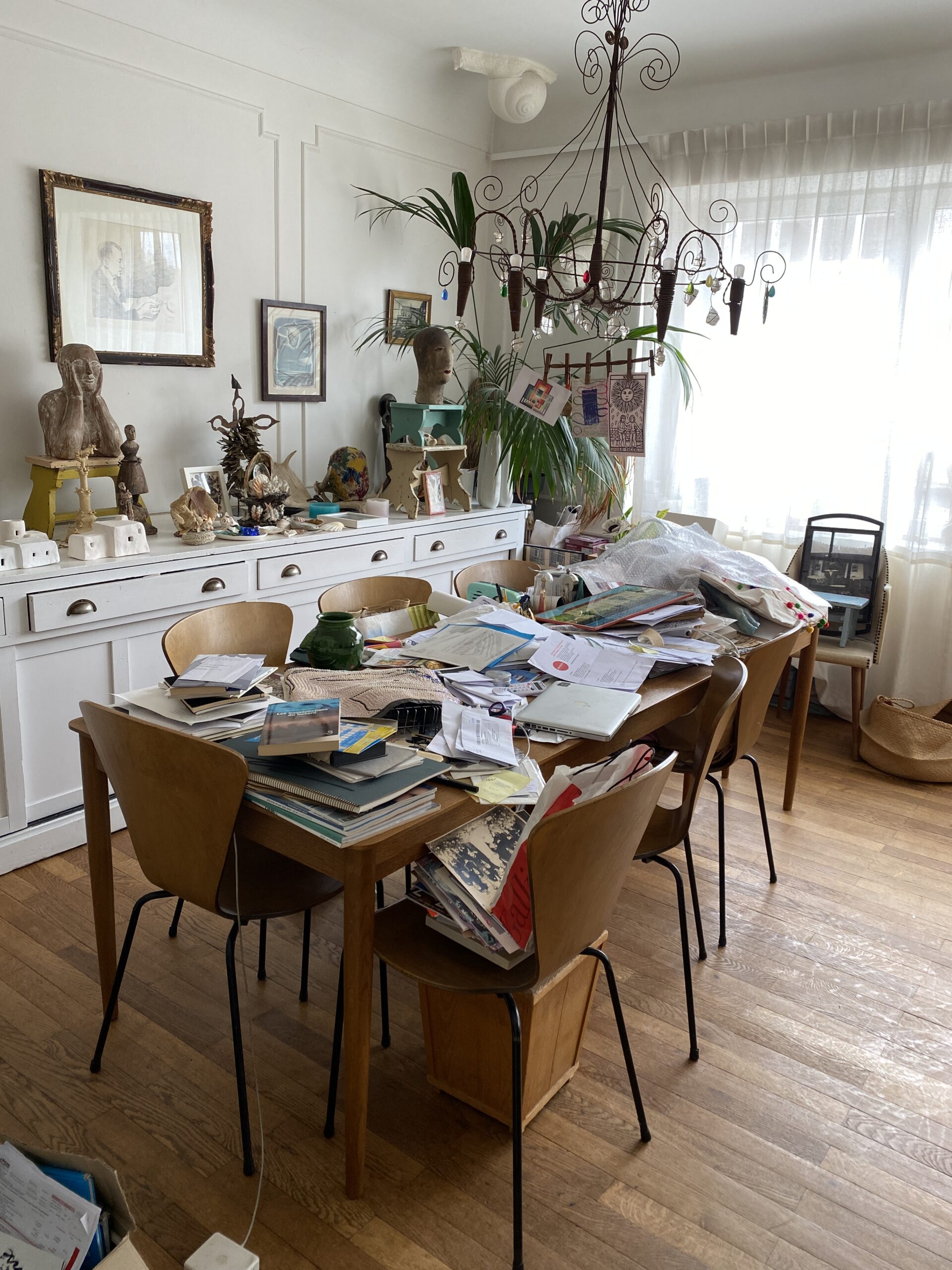 Ranger, ici, c’est libérer l’espace occupé par la paperasse (qui n’a pas lieu de s’y trouver) pour le consacrer aux objets que nous aimons, et rendre les dîners en famille ou entre amis à nouveau possibles.