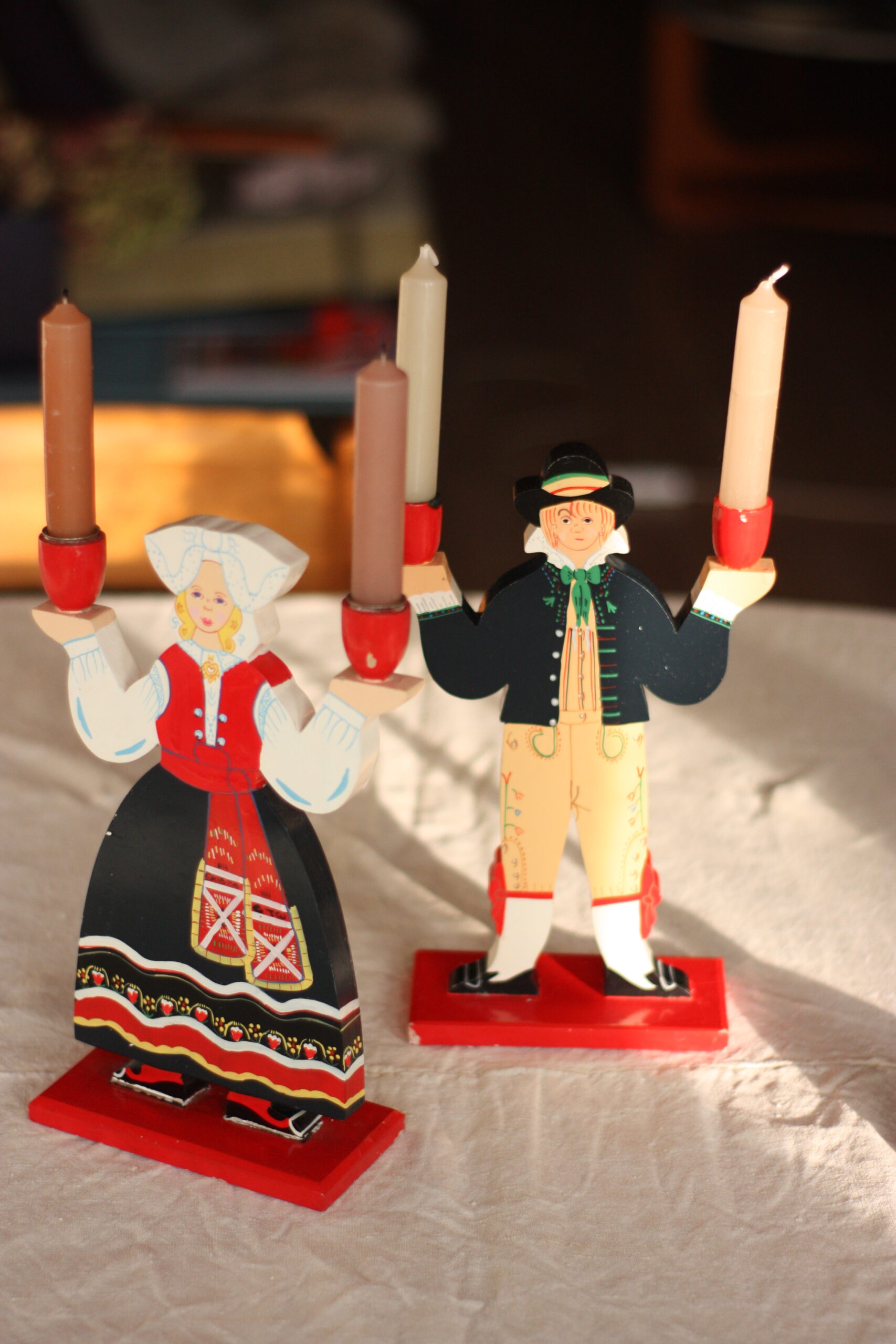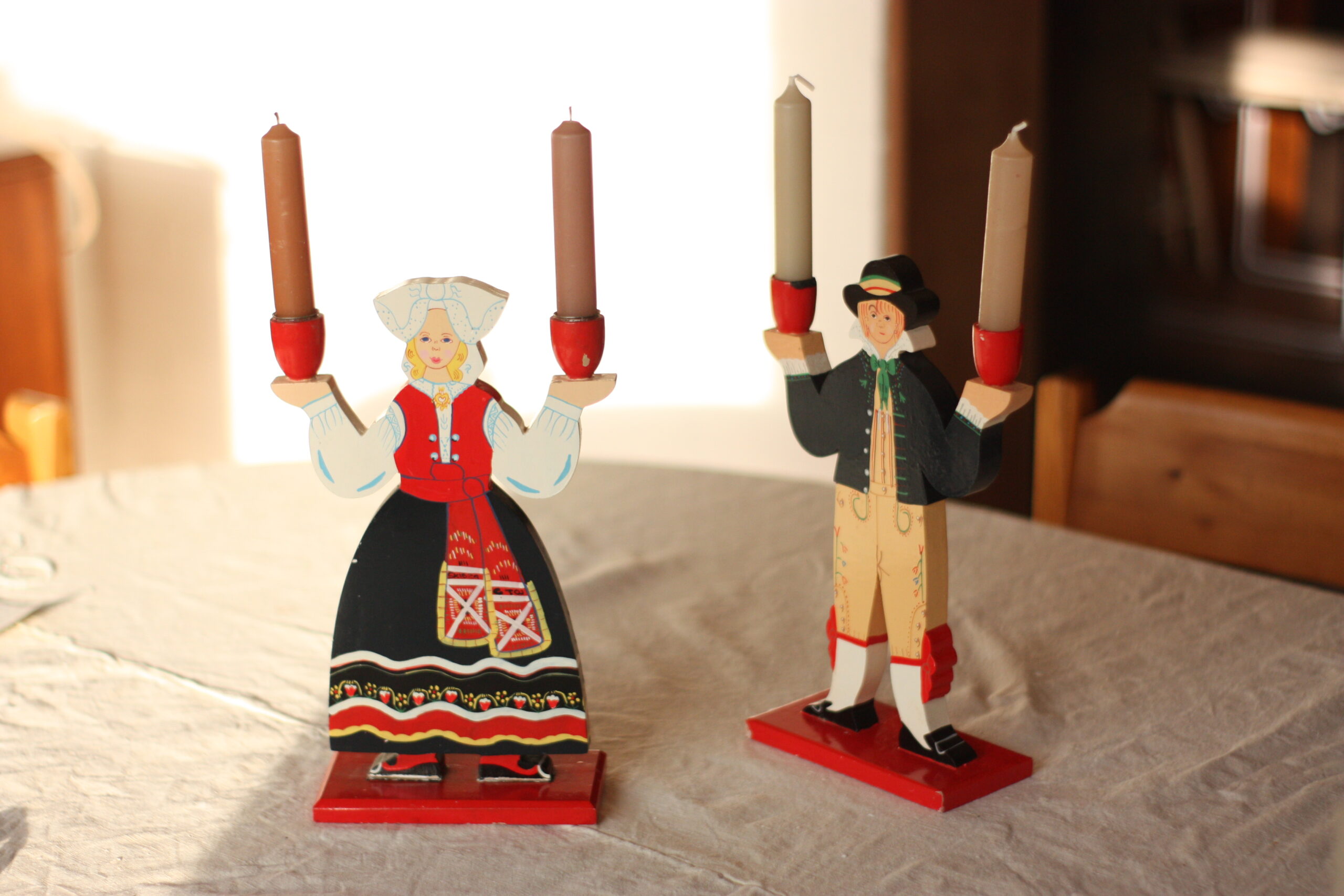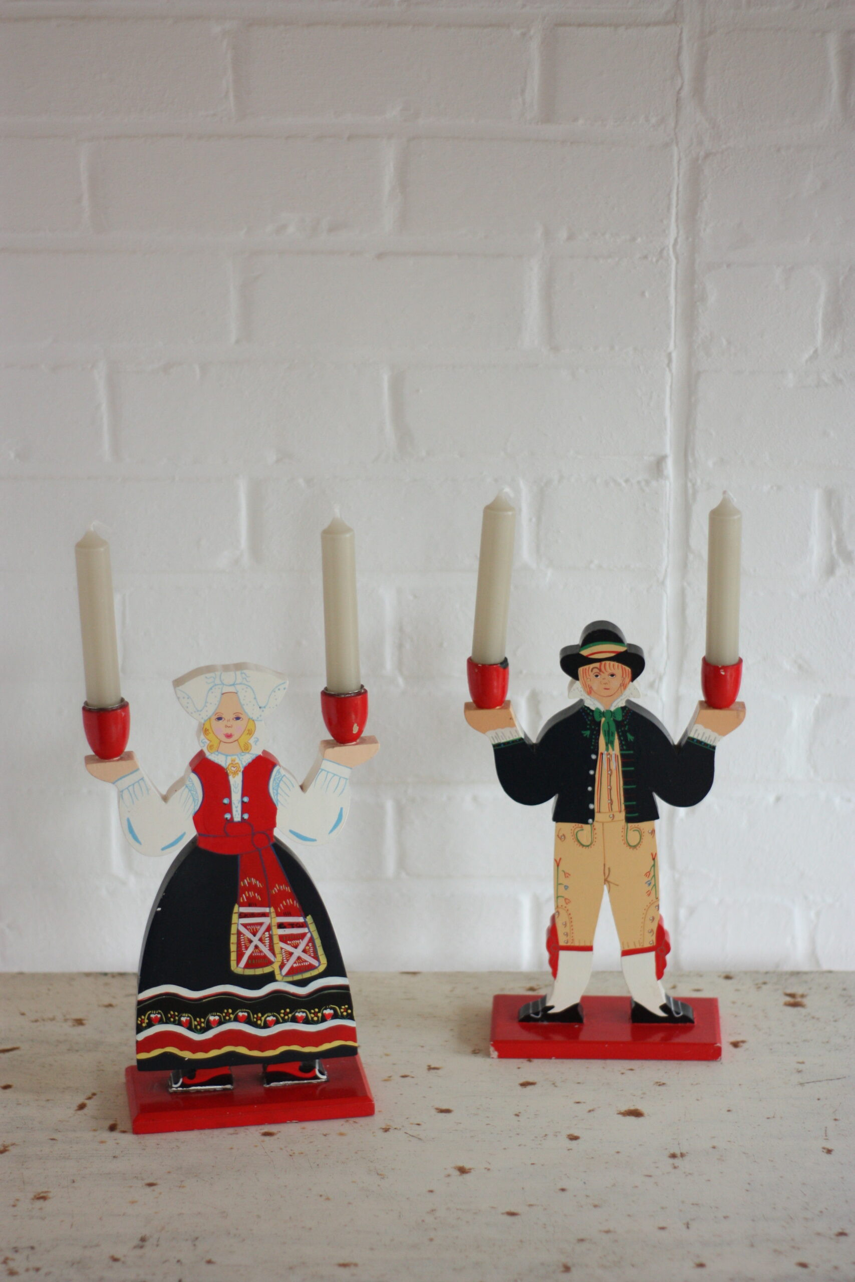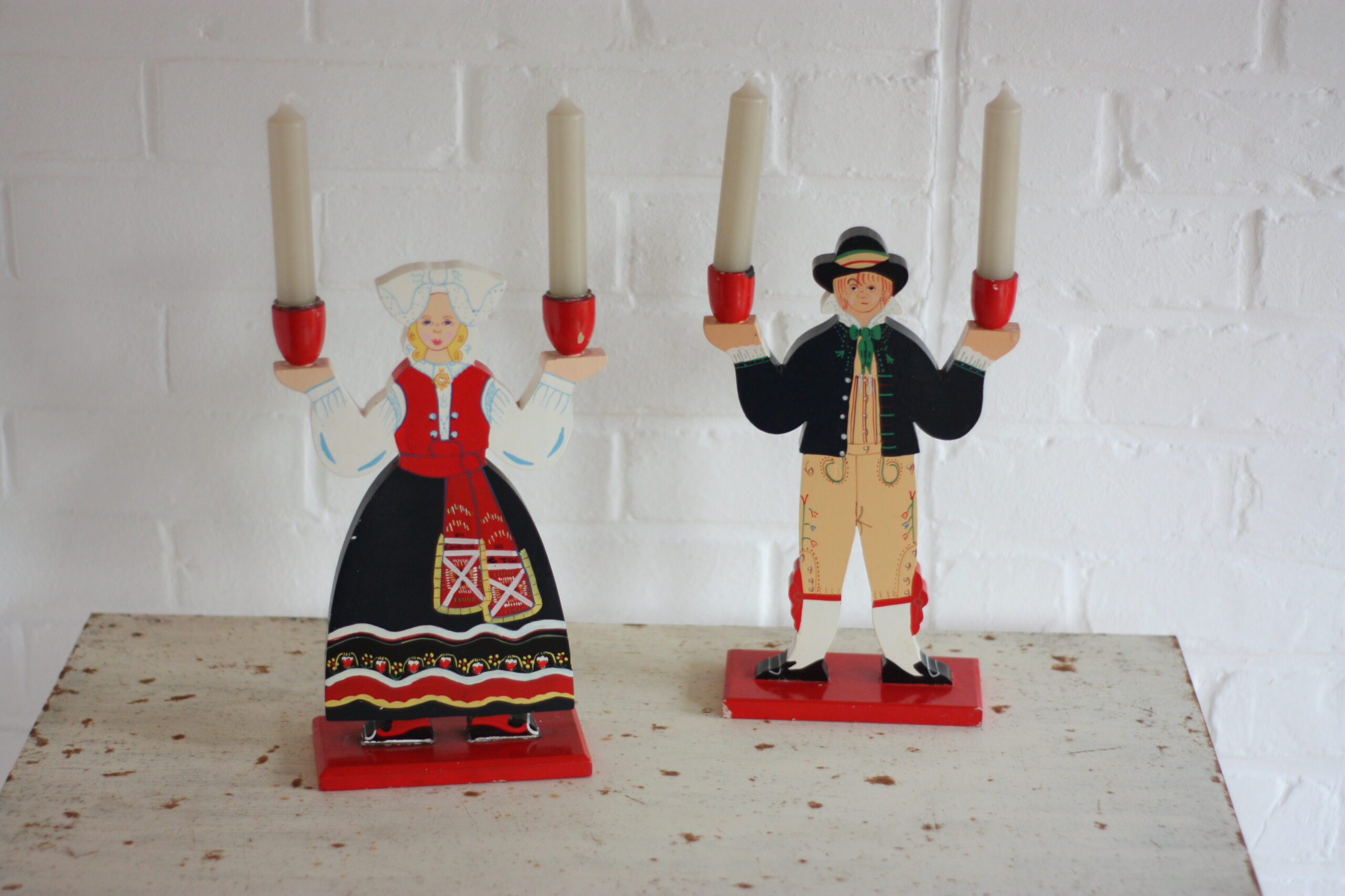 Bougeoirs d’art populaire suédois, décor scandinave des années 70, décor d’art populaire. Une production signée par notre ami Ikea !